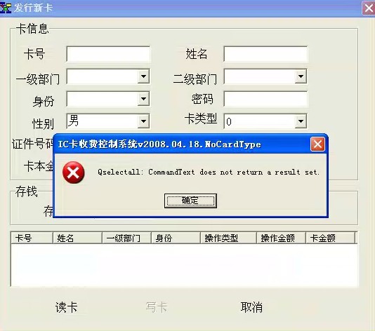 問:485水控機在發(fā)行新卡的時候提示錯誤 “Qselectall:CommandText does not return a result set.”