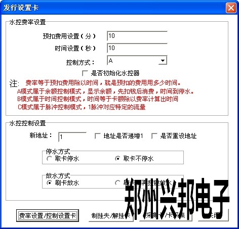 是否初始化水控器,該復(fù)選框中對管理卡來說的。如果在設(shè)置管理卡的時候選中該復(fù)選框,使用管理卡設(shè)置預(yù)扣費率的同時也初始化了水控機上的所有消費數(shù)據(jù)。