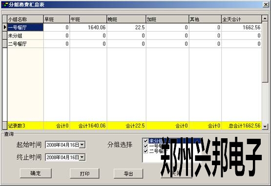 根據(jù)時(shí)間查詢出每組機(jī)器在每個(gè)時(shí)間段和所有時(shí)間段的消費(fèi)匯總情況,此表一般在給餐廳結(jié)帳時(shí)使用。