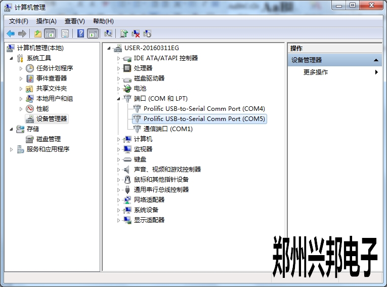 串口號查看方法,計算機右鍵——管理——設備管理如下圖所示