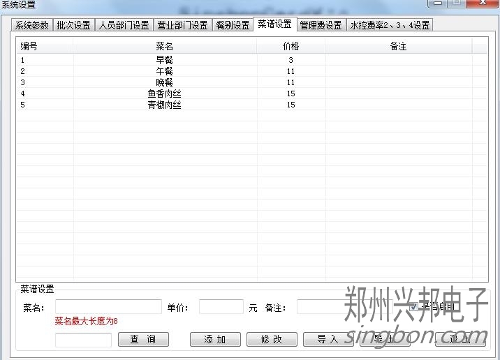 2、管理中心-系統設置--菜譜設置。在里面添加需要設置的菜單。