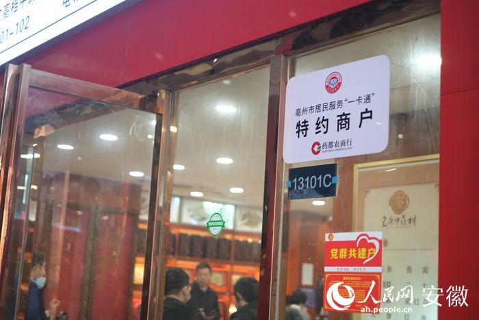 作為全國(guó)最大的中藥材集散地,亳州擁有“千家藥企、十萬(wàn)藥商、百萬(wàn)藥農(nóng)、千億級(jí)市場(chǎng)”,走進(jìn)亳州中藥材專(zhuān)業(yè)市場(chǎng),人民網(wǎng)安徽頻道發(fā)現(xiàn),不少店鋪門(mén)口都掛著“亳州市居民服務(wù)‘一卡通’特約商戶(hù)”的牌子。